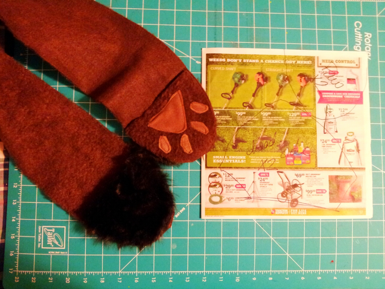 Chatterbox recently pulled out a bear costume of sorts that I made for him for last year’s Christmas pageant. Yep, he was a bear in the pageant. The director let all of the kiddies under 6 (who wouldn’t have a speaking part) choose their animal character, what ever that may be and what did Chatterbox choose? A bear. I also missed the memo that year that I was expected to make his costume, so the night before I made a screaming trip to Hobby Lobby, took a peek at Simplicity pattern 1795, noted the shape of the pieces and then pawed through the bargain bin for fur or anything that might pass for fur. With Chatterbox starting to play with this costume again, Hugs just had to have one too, so I broke out the leftover fur and cobbled together a slightly smaller version for him.