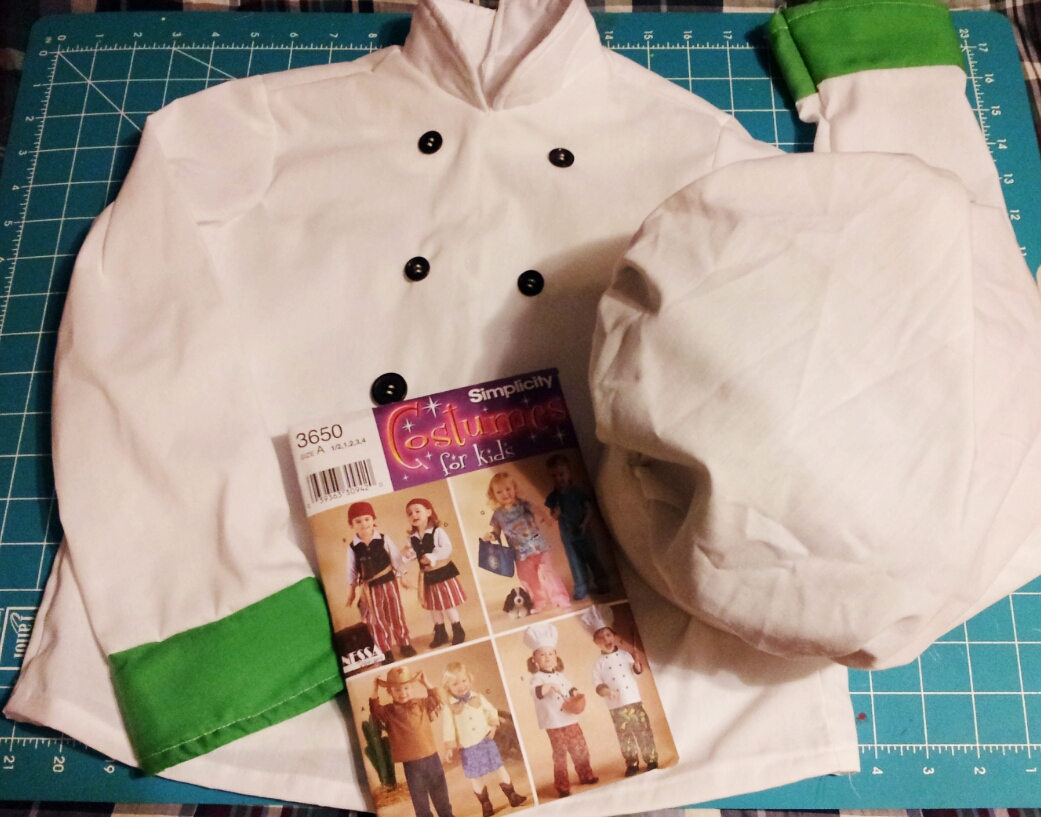 Conveniently that Simplicity pattern also included a chef’s hat and top; my sister-in-law makes cupcakes on cookies as a part-time job so I thought this would be another fitting gift idea. And while I was at it I thought the boys would enjoy a set too. I finally found a project that used up nearly all of the random buttons I had in my sewing cabinet.