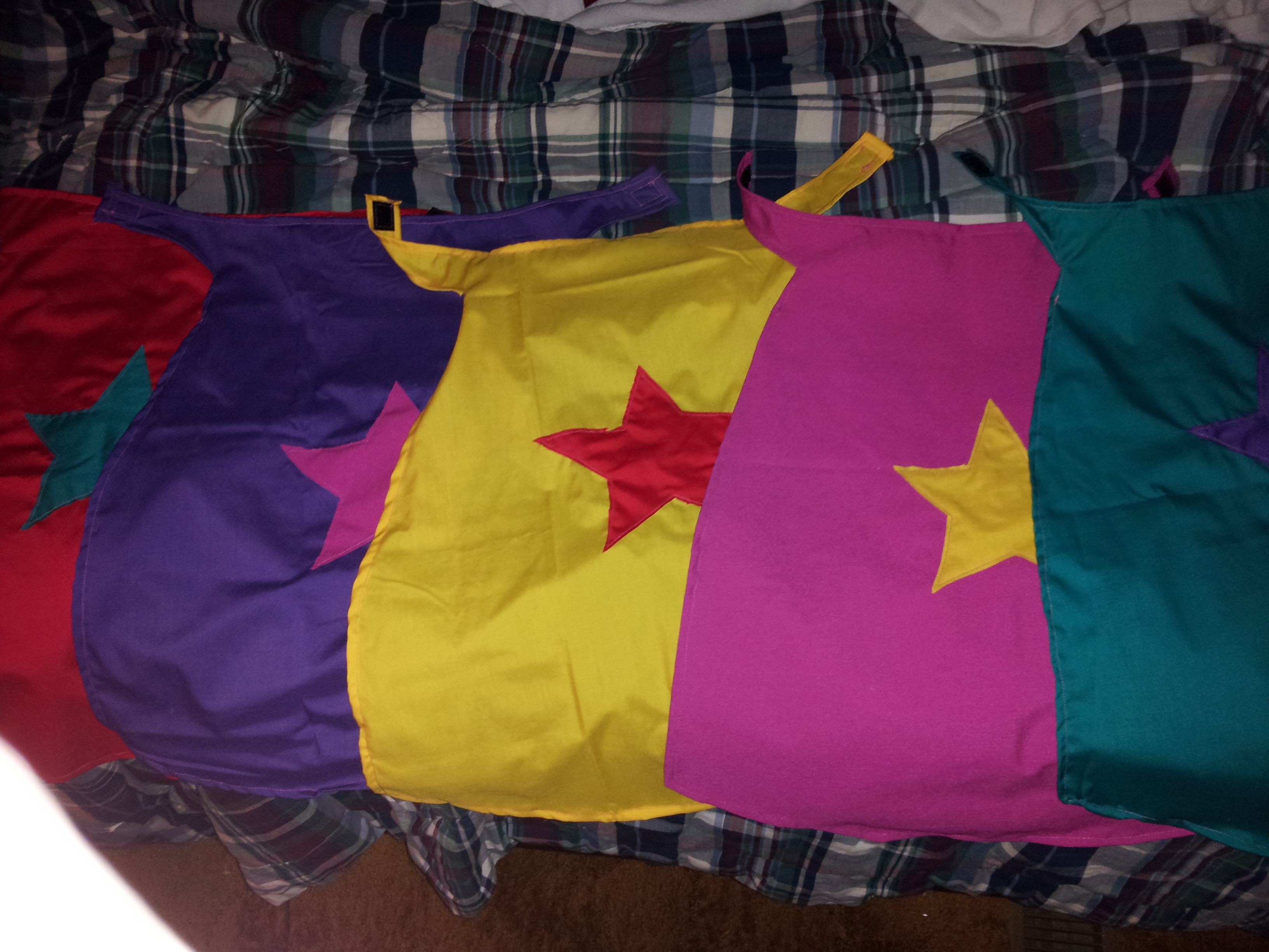 I rounded up my nieces gift of dress up clothes with what else, but several capes in multiple colors.