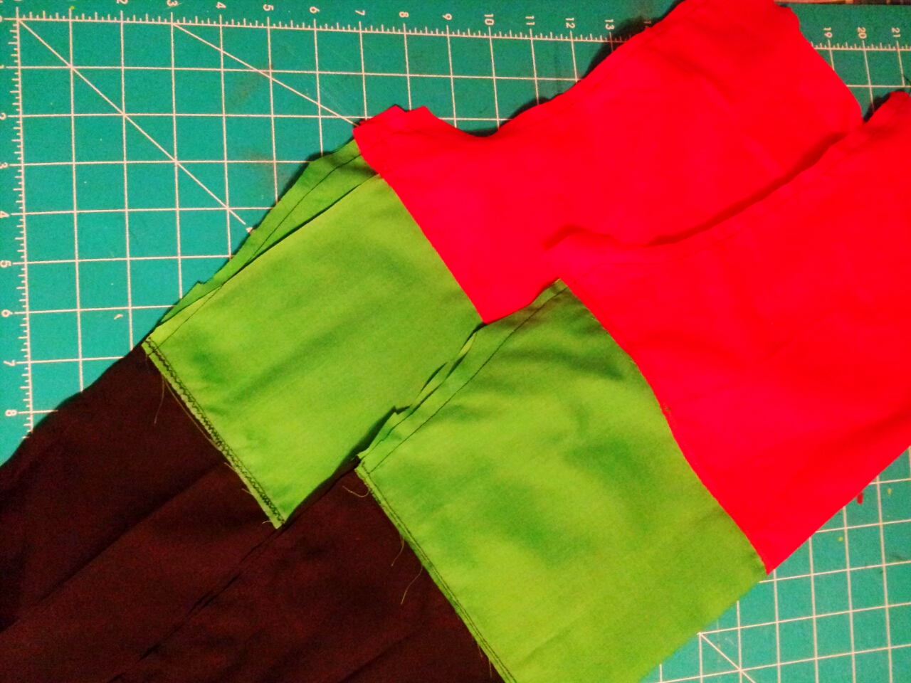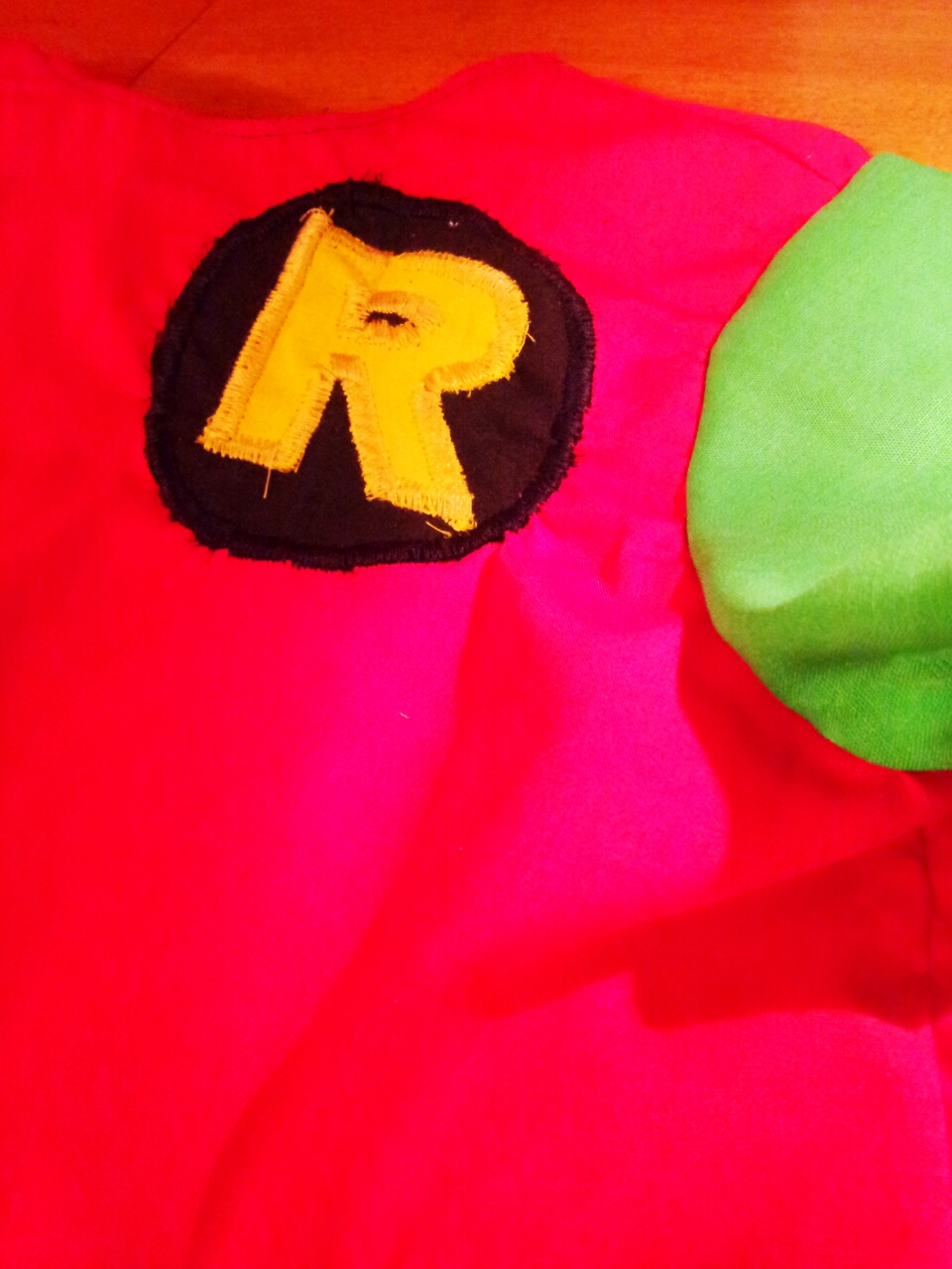 I was unsure about Hugs…would he even want to wear a costume. We have two that were given to us when Chatterbox was his age but they were all very hot: a giraffe and a dinosaur. Halloween temps in Texas are cool not cold. A coworker mentioned her husband and son would dress up every year in complimenting outfits. That was the final push for inspiration I needed. I have a ton of solid cotton fabric therefore Hugs can be Batman’s trusty sidekick, Robin. The top is complete but I have a bit more left to finish on the pants. I can’t wait to see them side by side!