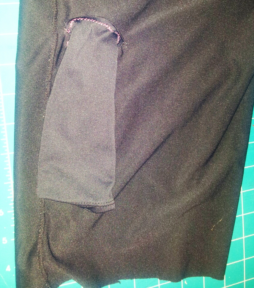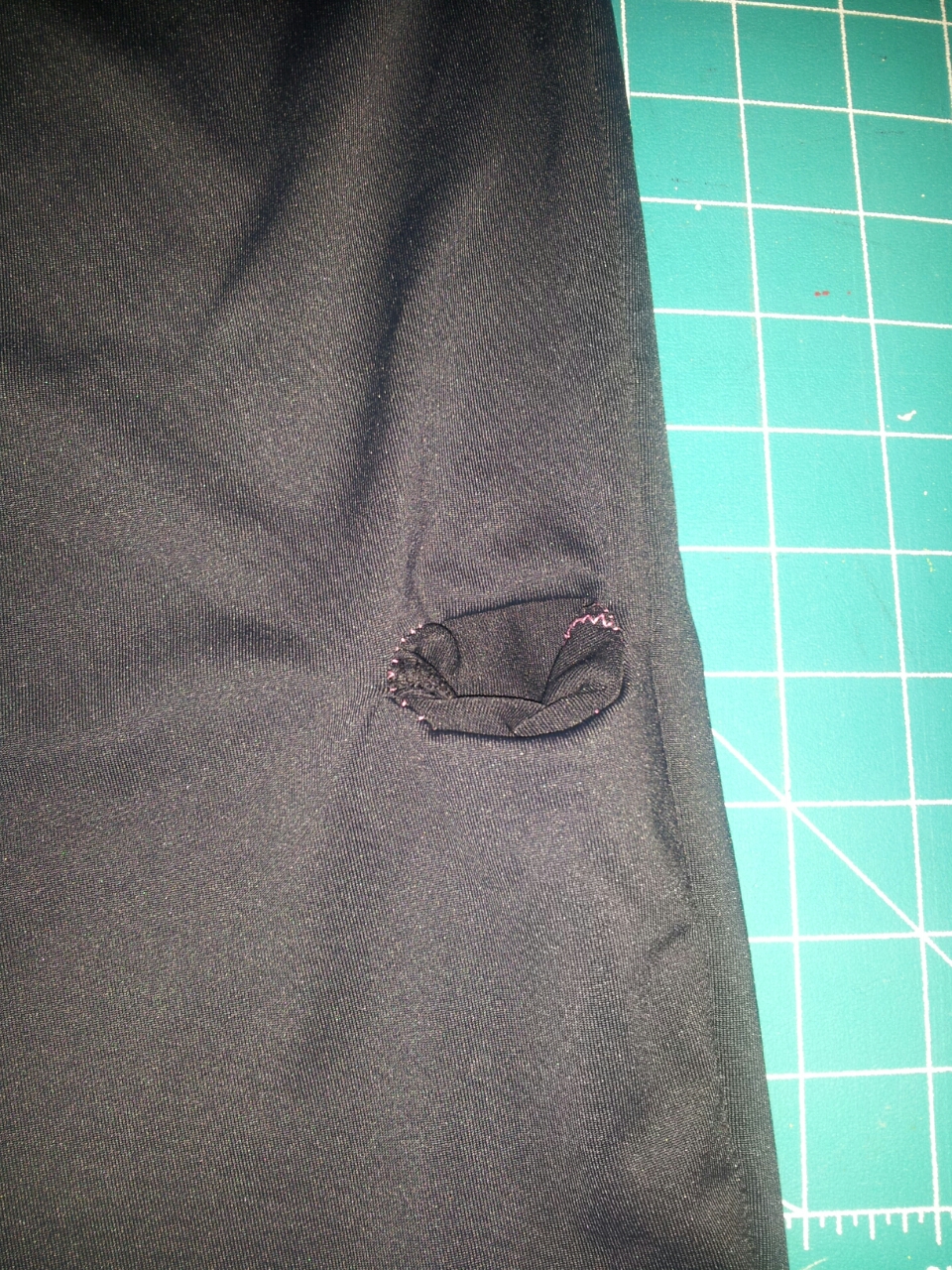 Running Pant #2 – considering the first pant was a success I tackled my only other running pant. I wanted to hem these up anyway, so I trimmed off the excess to use for the pocket. This material though is pretty much Lycra through and through. I learned my lesson with the too short pocket so I paid extra attention to making this pocket long enough to completely cover my phone. The flaw here is in the fabric. While the pocket completely covers my phone, the material is so stretchy that it tends to bounce while I’m running. I plan to modify it by tacking down all sides of the pocket to see if that will help.